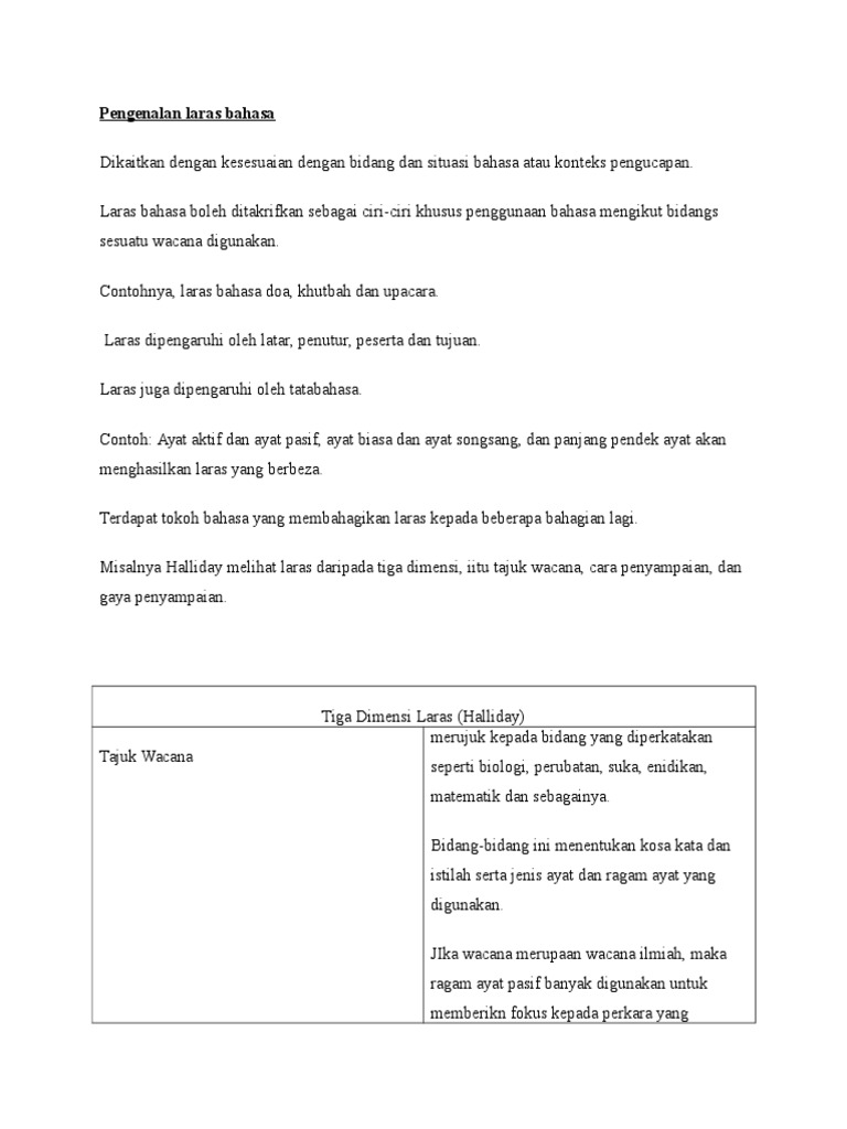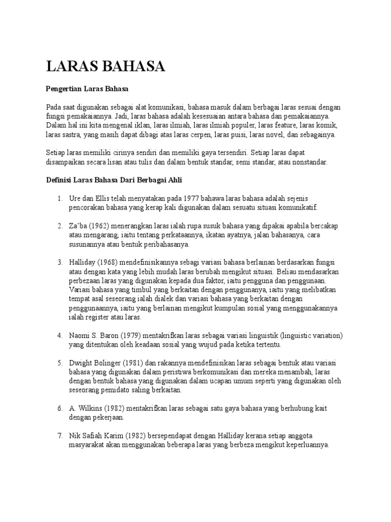 Jenis Jenis Dan Ciri Ciri Laras Bahasa